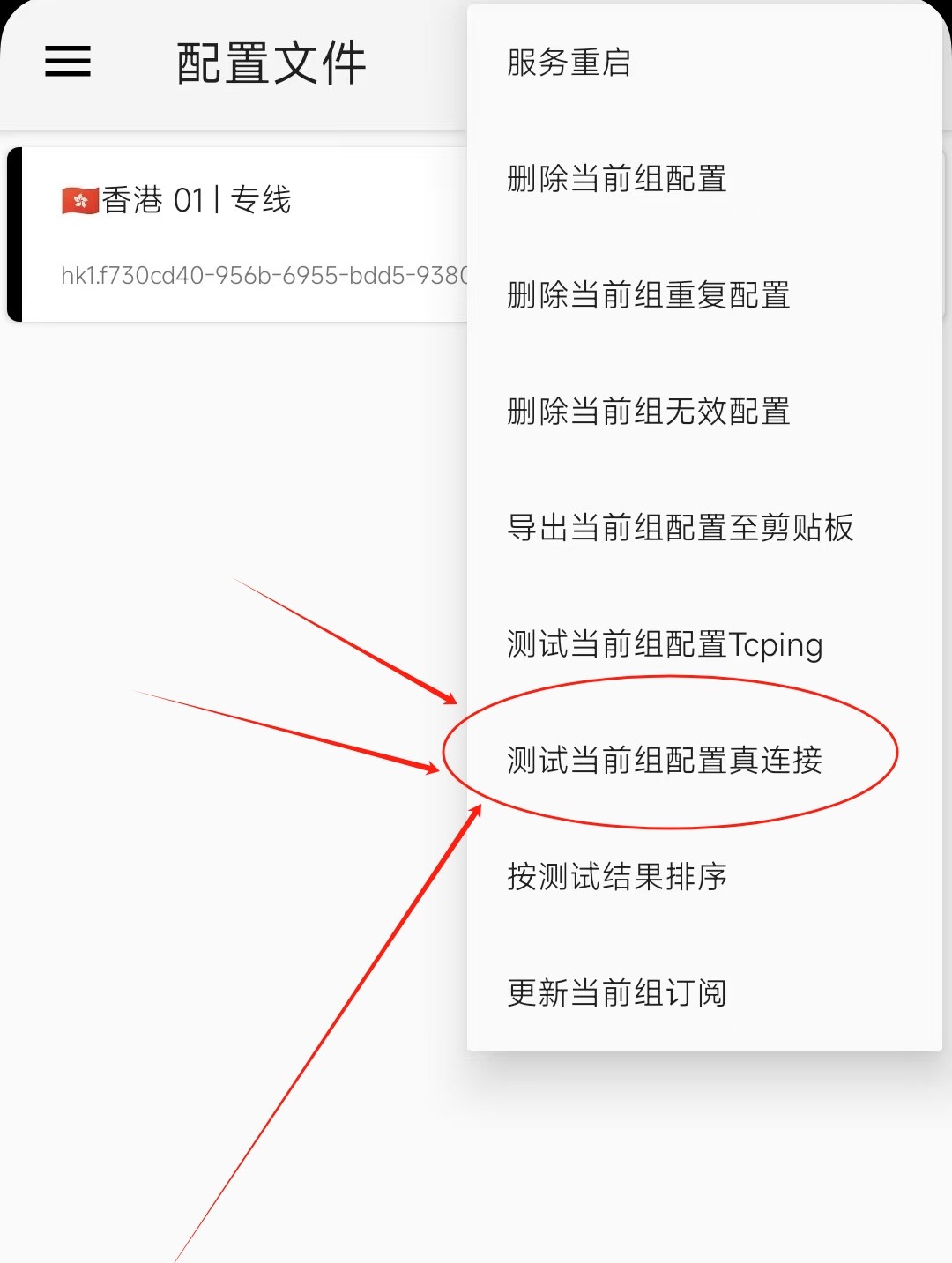 6:选择;测试当前组配置真连接